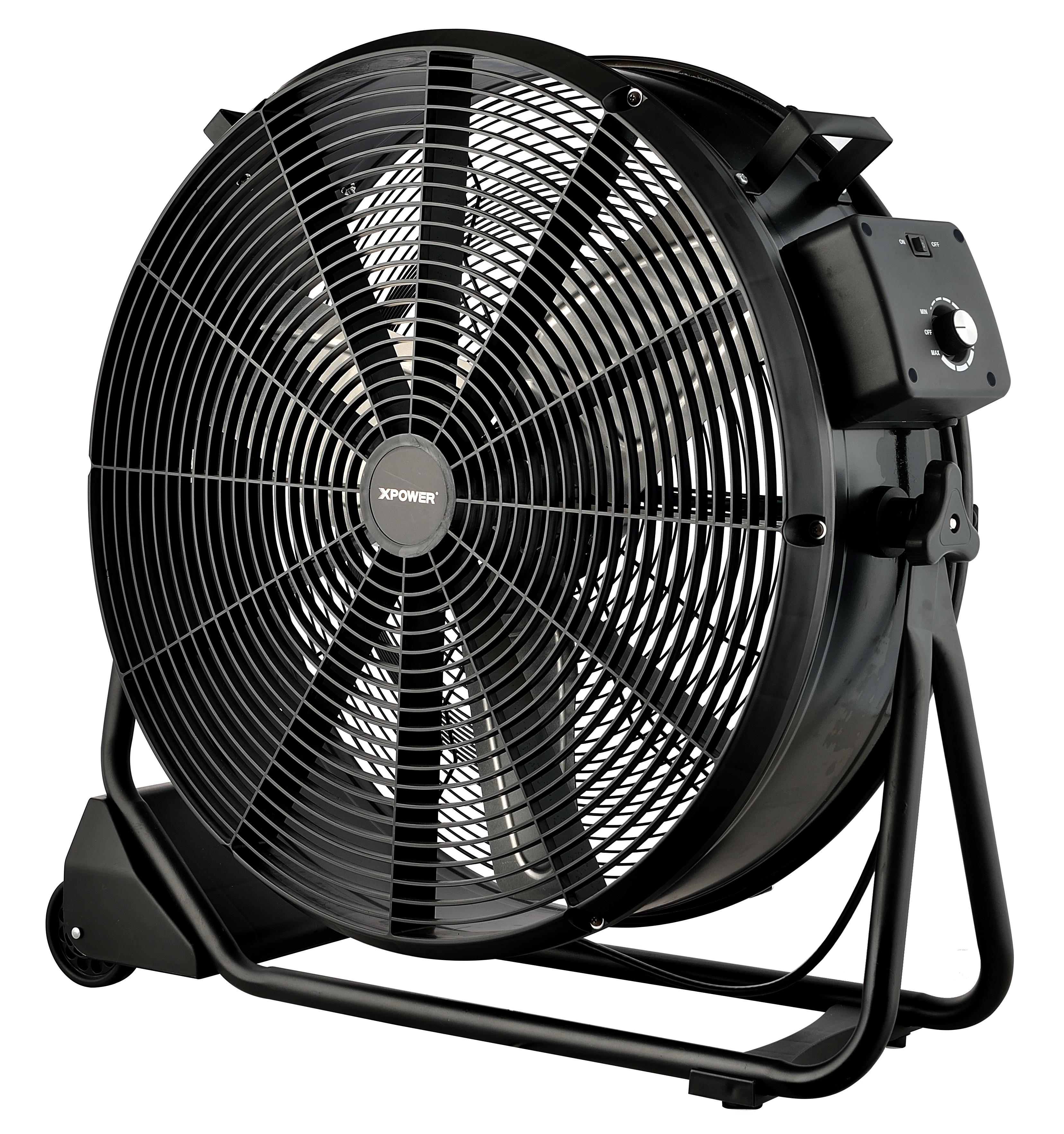 O novo XPOWER FD-630D Drum Fan é a escolha ideal para as suas necessidades de ventilação em armazéns, celeiros, garagens ou oficinas. O FD-630D está equipado com um motor brushless DC de 1/2 HP, capaz de gerar até 5800 CFM de fluxo de ar, consumindo apenas um máximo de 1,8 amperes. O controlo de velocidade variável permite ajustar facilmente o fluxo de ar de acordo com a aplicação. A estrutura resistente com rodas de fácil rolamento garante máxima portabilidade e oferece uma ampla gama de posições de funcionamento. O FD-630D possui certificação de segurança ETL/CETL e cumpre os requisitos da OSHA. Está preparado para responder às suas necessidades de ventilação, sejam elas pequenas ou de grande escala.