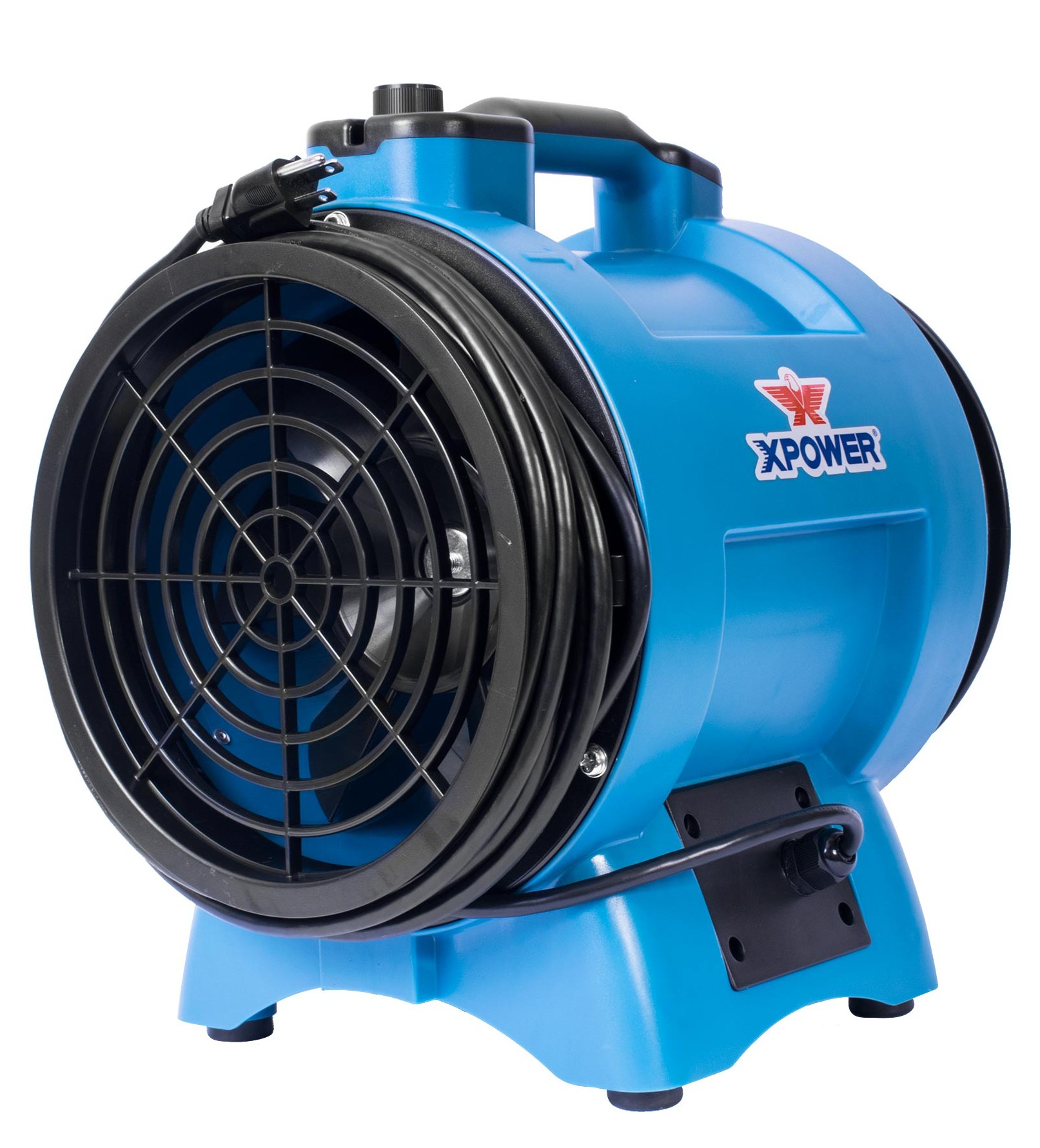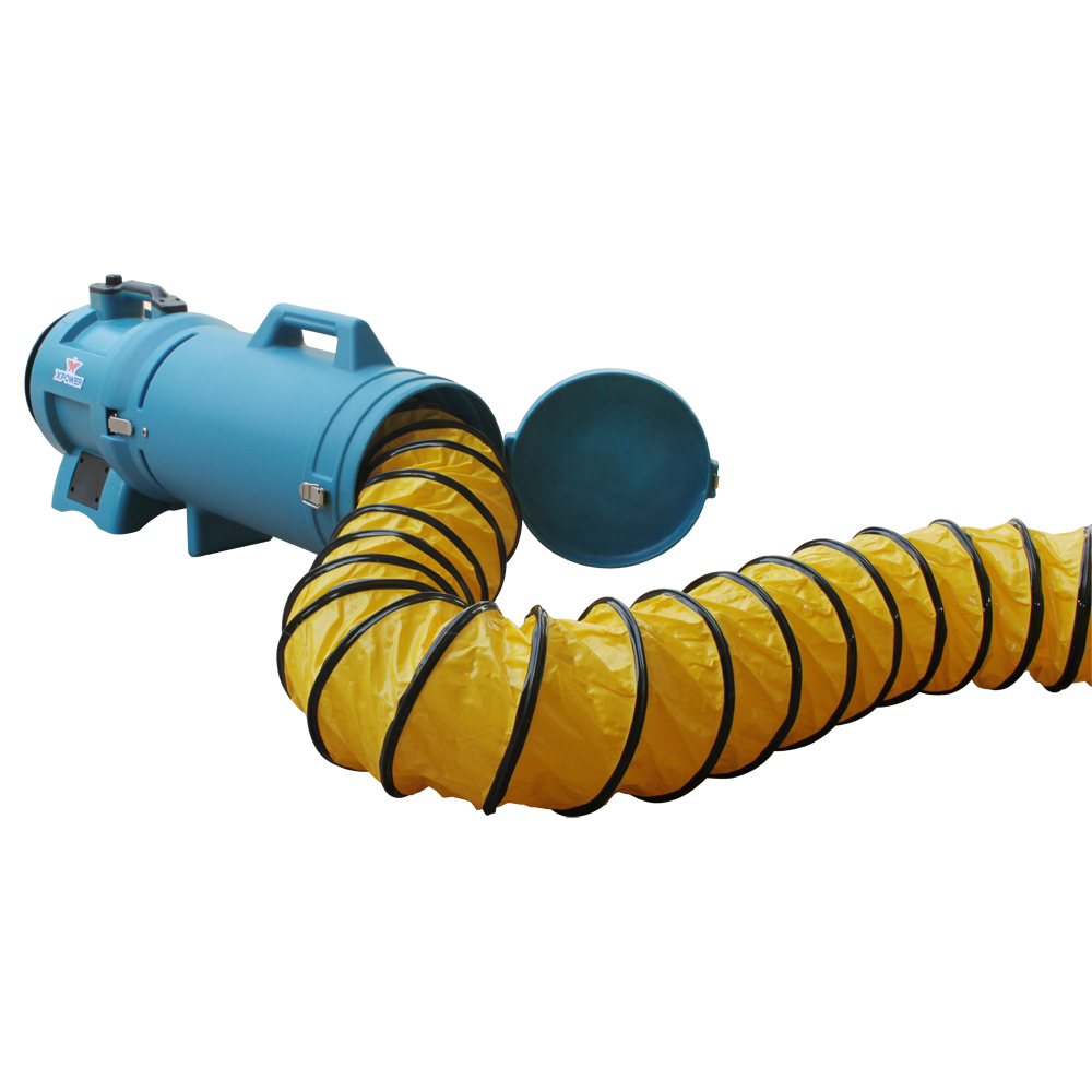 O XPOWER X-8 é o único ventilador industrial de 8 polegadas de diâmetro para espaços confinados com controlo de velocidade variável disponível no mercado. Com baixo consumo energético e um potente motor de indução, o X-8 fornece ar seco para tarefas de ventilação, secagem ou extração. Pode ser utilizado sem mangueiras para criar pressão de ar negativa e promover a circulação de ar em ginásios, corredores e outras áreas amplas. Com a mangueira de 8 polegadas opcional (8DH25), é possível ventilar espaços estreitos até 38 metros, incluindo poços subterrâneos e esgotos. Leve e fácil de transportar, este modelo pesa apenas 6,1 kg e apresenta uma carcaça duradoura em ABS moldado por injeção. Para maior comodidade no transporte e instalação da mangueira, está disponível o suporte de mangueira em ABS com pega (8DHC).